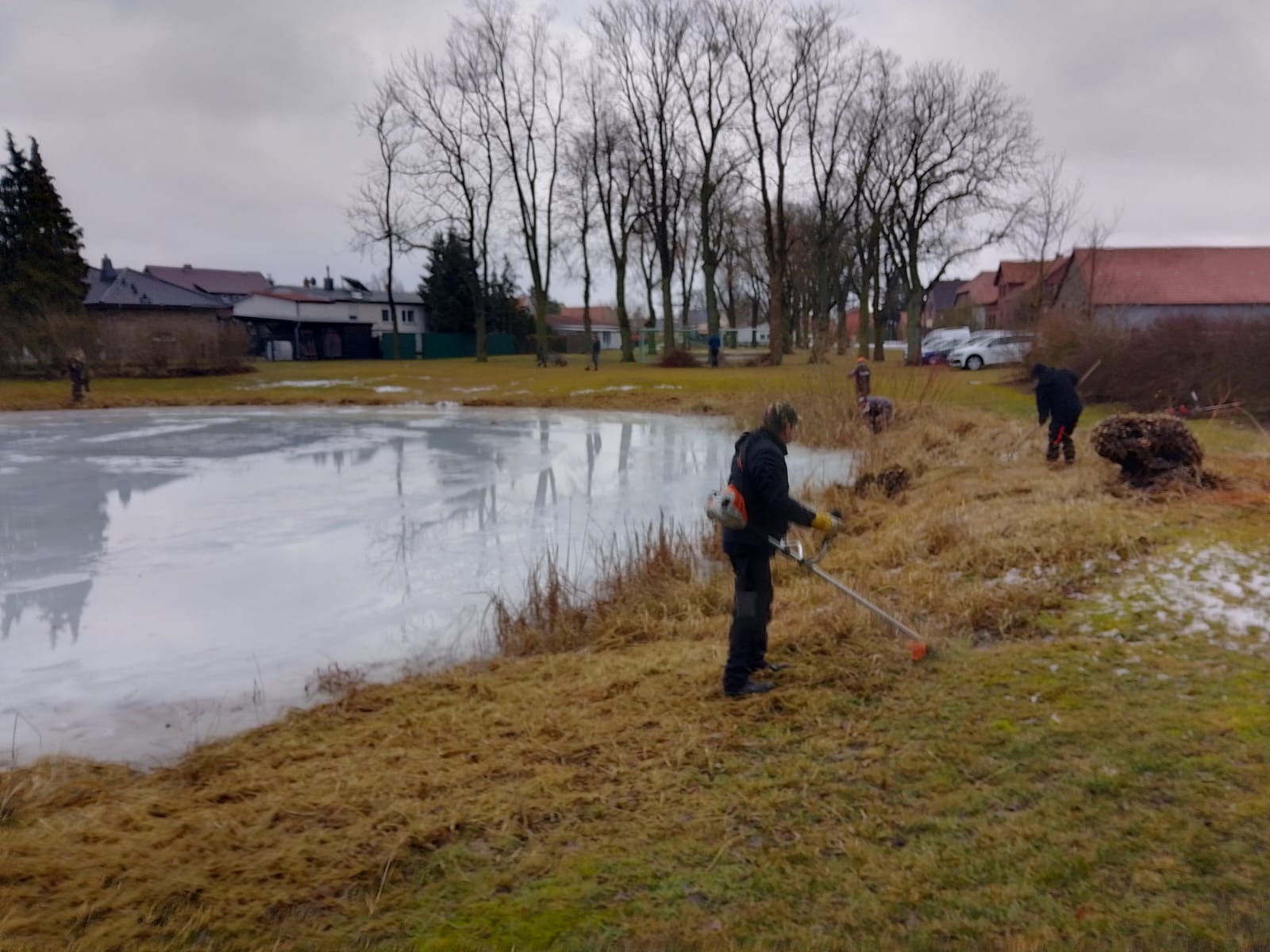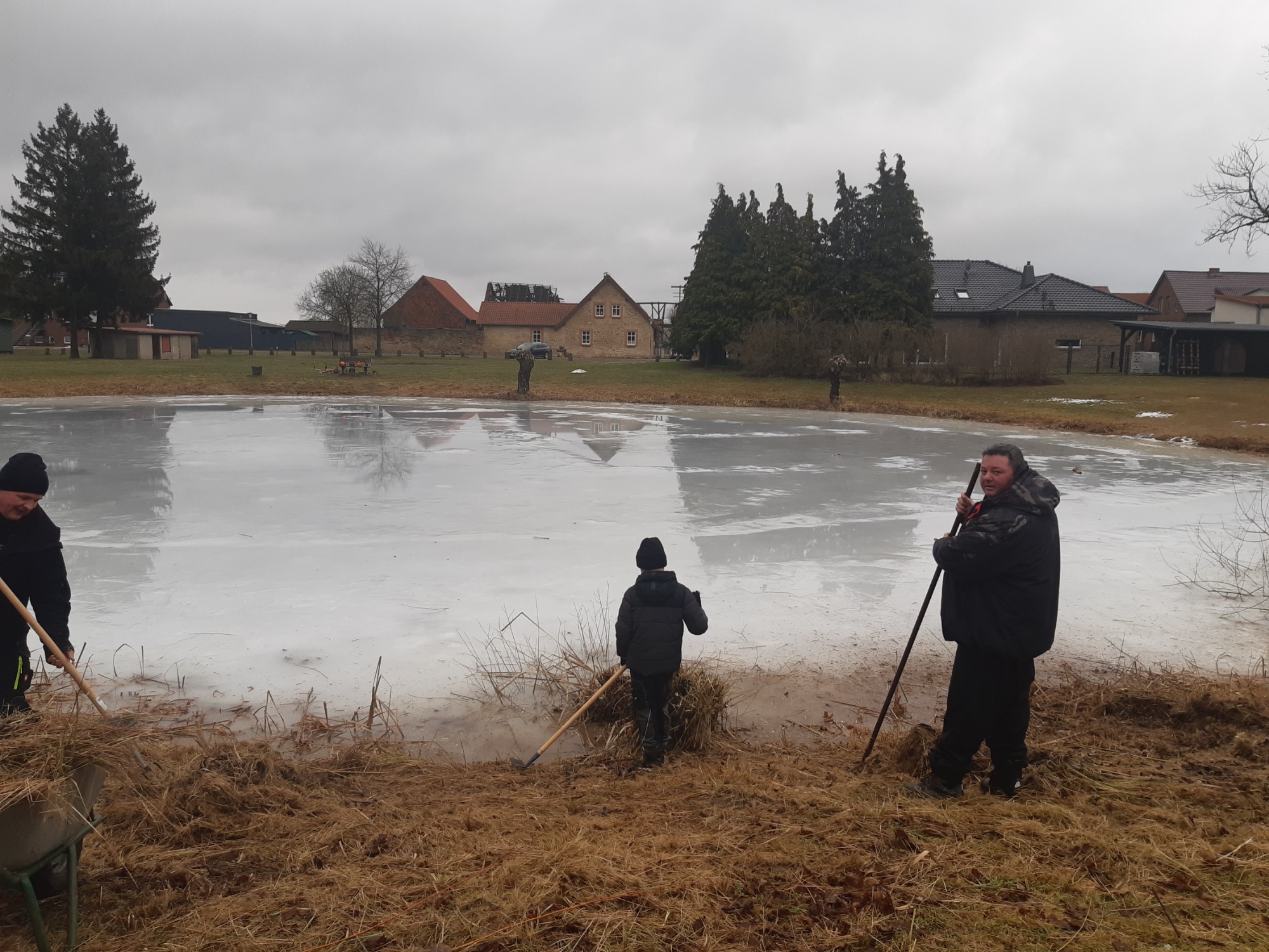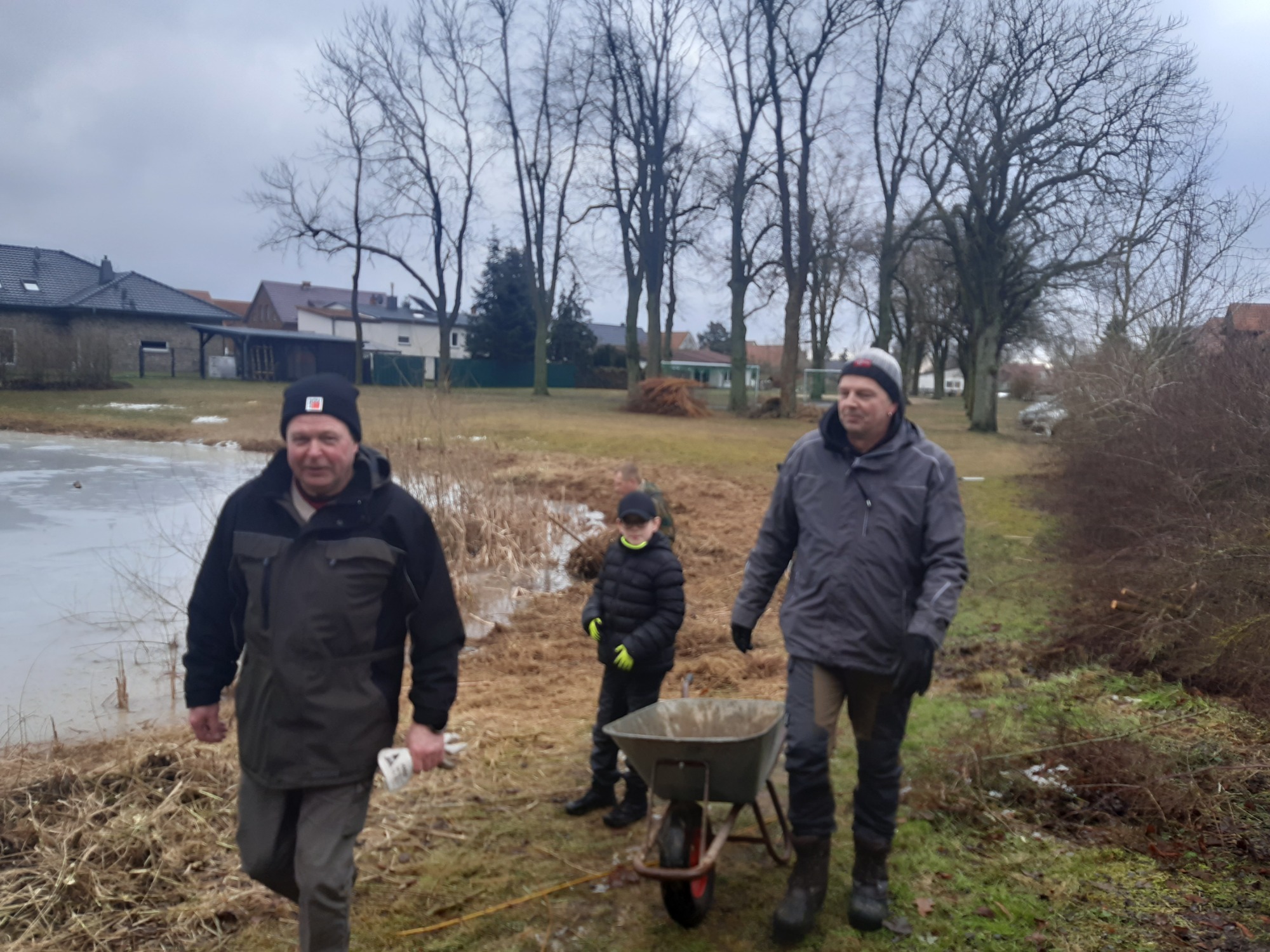 Der 2. Arbeitseinsatz im Jahr 2026 fand aufgrund des Tauwetters am Dorfteich in Breitenrode statt. Es haben sich 15 Mitglieder beteiligt, das Ufer des Gewässers von abgestorbenen Pflanzen zu befreien.