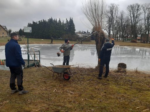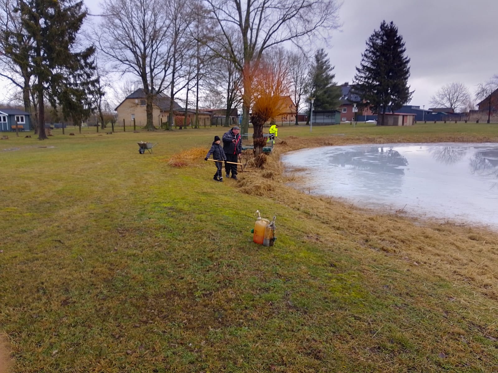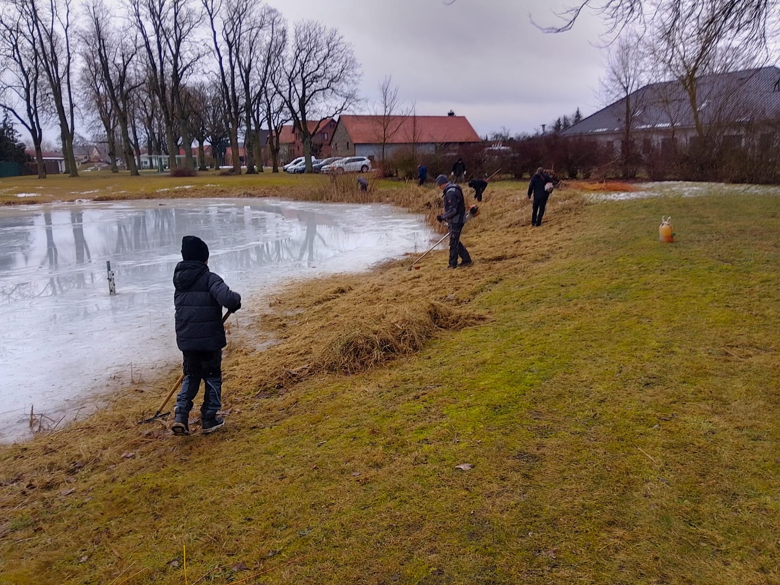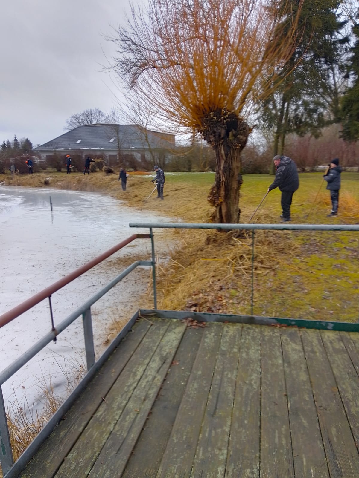 Der 2. Arbeitseinsatz im Jahr 2026 fand aufgrund des Tauwetters am Dorfteich in Breitenrode statt. Es haben sich 15 Mitglieder beteiligt, das Ufer des Gewässers von abgestorbenen Pflanzen zu befreien.